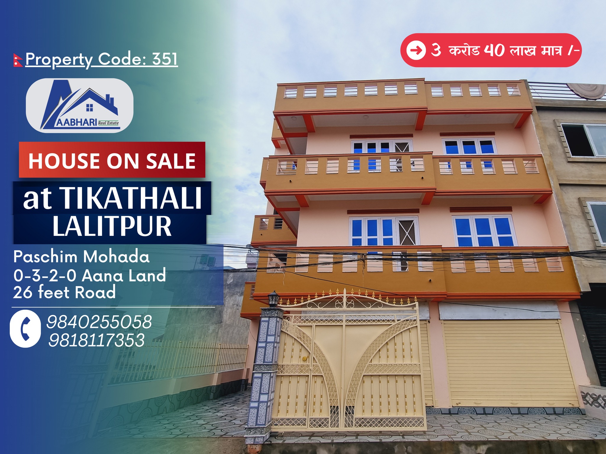A 3 storied House with 3 aana 2 paisa of land is for sale at Imadol