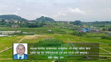 जग्गाको क्षेत्रफल बढेपछि घरको मूल्य पनि बढ्ने भइहाल्यो । तर, हामीले नियमावली नआउँदै चार आनाभन्दा बढी क्षेत्रफलमै घर बनाउन थालेका थियौं । हाम्रो सबैभन्दा कम क्षेत्रफलको जग्गा साढे चार आना रहेको छ ।